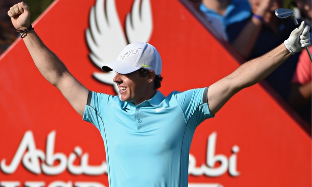 Martin Kaymer (13 undir pari) hefir enn 1 höggs forystu á Belgann Thomas Pieters (12 undir pari) eftir stórglæsilegan leik og er í efsta sæti í hálfleik og nr. 1 á heimslistanum Rory McIlroy er búinn að læða sér í 3. sætið á skortöflunni (á 11 undir pari), en náði hann m.a. stórglæsilegum ási á par-3 15. holunni í Abu Dhabi golfklúbbnum, þeim fyrsta á atvinnumannsferli sínum!!! (Sjá í myndskeiði hér að neðan í hápunktum 2. dags).