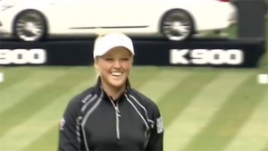 Fyrsti hringur Brooke Henderson, 18 ára, upp á 4 undir pari, 67 högg var nógu góður til þess að komast í forystu á 2. risamóti ársins í kvennagolfinu, KPMG Women’s PGA Championship. En eftir hringinn fékk hún flestar spurningar um 13. holu vallarins … holuna, þar sem hún fékk ás. Holan er 152 yarda þ.e. um 139 metra og fyrir ásinn fékk Brooke glænýjan KIA K900 bíl. Eftir að boltinn fór í holuna hélt hún upp á draumahöggið með systur sinn sem jafnframt er kaddýinn hennar, Brittany. en þær voru svo ánægðar að þær gerðu sér fyrst ekki grein fyrir að bíll væri í verðlaun. „Við bara gleymdum bílnum,“ sagði Brittany, „en þegar Lesa meira