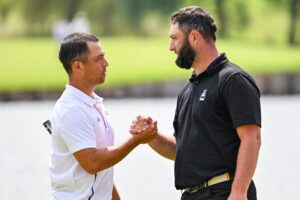 Það eru Xander Schauffele og Jon Rahm, sem eru efstir og jafnir fyrir lokahringinn á Ólympíuleikunum. Báðir eru búnir að spila á 14 undir pari, 199 höggum; Rahm (67 66 66) og Schauffele (65 66 68). Næstur er Tommy Fleetwood, aðeins 1 höggi á eftir, er búinn að spila á samtals 13 undir pari, 200 höggum (67 64 69). Daninn Nicolai Højgaard er hástökkvari dagsins, fór upp um heil 26 sæti eftir að hafa skilað lægsta skori dagsins, glæsilegum 62 höggum. Hann deilir nú 4. sætinu ásamt forystumanni fyrri tveggja daga, Japanans Hideki Matsuyama, báðir á samtals 11 undir pari, 3 höggum frá Rahm og Schauffele. Sjá má stöðuna í Lesa meira
