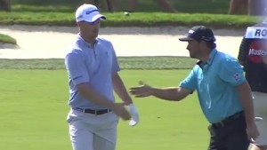 Justin Rose átti högg dagsins á 1. degi Arnold Palmer Invitational á Bay Hill. Það var glæsiörn, sem kom á par-4 3. holu Bay Hill. Rose er sem stendur T-7 í mótinu, fékk 2 erni, 3 fugla en líka 1 skolla og 1 skramba á hringnum – en þó var örninn á 3. braut öllu glæsilegri en á par-5 17. brautinni!!! Ansi skrautlegt skorkort!!! Hér má svo sjá högg 1. dags á Arnold Palmer Invitational SMELLIÐ HÉR: