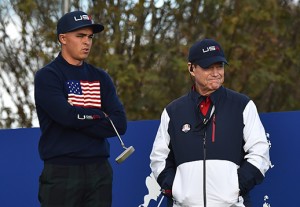 Varla hafði síðasta púttið dottið í viðureign liðs Bandaríkjanna við lið Evrópu og sigur Evrópu í höfn 3. árið í röð (16 1/2 – 11 1/2) að farið er að spá í næsta fyrirliða bandaríska liðsins. Billy Horschel, sem ekki hlaut náð fyrir augum fyrirliðans, Tom Watson nú í ár var fljótur að tvíta: „Fyrirliði 2016 Fred Couples eða Paul Azinger!“ Phil Mickelson, sem talinn er öskureiður yfir að hafa ekki fengið að spila í gær (á laugardeginum) og var einn af fáum Bandaríkjamönnum, sem unnu leik sinn í dag sagði eftirfarandi: „Við vorum með frábæra formúlu 2008. Ég veit ekki af hverju við hættum við hana. Ég veit ekki Lesa meira