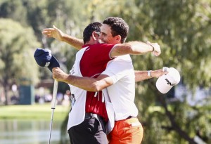 Bandaríkjamaðurinn David Lipsky vann í dag fyrsta titil sinn á Evrópumótaröðinni, og það á Omega Masters í Crans-sur-Sierre í Sviss. Lipsky sigraði eftir stuttan bráðabana við Graeme Strom, sem getur þó alls ekki verið tapsár eftir að hafa unnið sér inn glæsilega BMW bifreið fyrir ás í gær. Lipsky og Strom spiluðu báðir á 18 undir pari 262 höggum; David Lipsky (67 64 66 65) og Graeme Strom (64 66 64 68). Þriðja sætinu deildu Tyrell Hutton og enn annar Bandaríkjamaður, sem varð í einu efstu sæta á mótinu Brooks Koepka, báðir aðeins 1 höggi á eftir sigurvegurunum. Til þess að sjá lokastöðuna á Omega Masters SMELLIÐ HÉR: Til þess Lesa meira