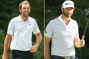 Úrslitin í 8 manna úrslitum voru eftirfarandi: Scottie Scheffler vann Seamus Power 3&2 Dustin Johnson vann Brooks Koepka 2 up Kevin Kisner vann Will Zalatoris 4&3 Corey Conners vann Abraham Ancer 2 up —————————————— Dustin Johnson mætir Scottie Scheffler í 4 manna úrslitum Kevin Kisner mætir Corey Conners í 4 manna úrslitum. Sigurvegarar úr viðureignunum tveimur spila síðan um 1. og 2. sætið og þeir sem tapa viðureignum sínum, um 3. og 4. sætið. Einhver þessara fjögurra mun standa uppi sem heimsmeistari í holukeppni. Spurning hver? Fylgjast má með úrslitunum með því að SMELLA HÉR: Í aðalmyndaglugganum: Tveir, sem þykja líklegastir til að hampa heimsmeistaratitlinum í holukeppni: Scottie Scheffler og Lesa meira