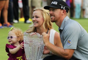 Hunter Mahan sigraði í gær á The Barclays, 1. mótinu í FedEx Cup umspilinu af 4 í ár. Mahan er 32 árs, (fæddur 17. maí 1982) og þetta er 6. sigur hans á PGA Tour og sá 9. á ferlinum. Mahan vann síðast 1. apríl 2012 þ.e. fyrir 2 árum á Shell Houston Open. Hann hefir yfirleitt náð góðum árangri í FedEx Cup umspilinu og var hann nálægt því að sigra í The Tour Championship 2011, en tapaði þar eins og frægt er orðið fyrir Bill Haas, sem átti geggjað högg upp úr vatni!!! Sjá má hápunkta 4. dags The Barclays með því að SMELLA HÉR: