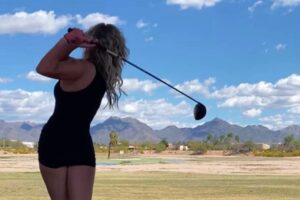 Paige Spiranac sýndi aðeins meira en bara golfsveifluna sína í nýjasta Instagram myndbandinu sínu. Spiranac á 3,2 milljónir fylgjenda á Instragram (IG) einu, heilli milljón meira en Rory McIlroy! Í nýjasta myndskeiðinu segist hún vera að sýna áhangendum sínum „hina fullkomnu pre-shot routine“ Hins vegar virtist Spiranac sjálf hafa meiri áhuga á bakhluta sínum og grínaðist með að myndbandið hafi verið kjörið tækifæri til að „sýna afturendann á sér að óþörfu á IG.“ Í myndskeiðinu er Spiranac í þröngum spandexsamfestingi, sem virtist heilla áhorfendur ef marka má viðbrögð þeirra. Einn sagði: „Allt varðandi Spiranac er fullkomið“ annar sagði að bara það að horfa á hana bætti golfform sitt. Sé svo Lesa meira