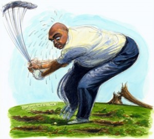 Sveifla körfuboltasnillingsins Charles Barkley hefir verið milli tannanna á golffréttariturum og geysivinsælt fréttaefni, því enginn þykir öruggur á golfvelli þar sem Barkley-inn er nærri! Vert er að rifja upp eitt dæmi um skelfilega sveiflu Barkley með því að SMELLA HÉR: Sveifla Barkley hefir verið talin meðal þeirra skrítnustu í allri sögu golfsins, sjá m.a. eftirfarandi myndseið SMELLIÐ HÉR: Nú um daginn frumsýndi Barkley hins vegar nýja og „bætta“ sveiflu sem sjá má með því að SMELLA HÉR: Þar slær Barkley með 1 hendi!