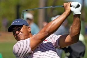 Það eru 4 kylfingar, sem eru efstir og jafnir eftir fyrsta dag Valspar, sem er mót vikunnar á PGA Tour. Þetta er weir Jhonattan Vegas, Sam Burns, Adam Hadwin og David Lipsky. Allir komu þeir í hús á 7 undir pari, 64 höggum. Mótið fer fram í Palm Harbour, Flórída dagank 17.-20. mars 2022. Sjá má stöðuna á Valspar meistaramótinu eftir 1. dag með því að SMELLA HÉR: Í aðalmyndaglugga: Jonathan Vegas frá Venezuela, sinn fjórmenningana í forystu á Valspar e. 1. mótsdag