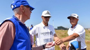 Opna breska 2014: Rickie Fowler og Charl Schwartzel slá í sama eftirlitsmann