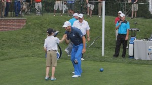 Sergio Garcia og TaylorMade komu kylfingum á Bethpage Black golfvellinum í New York á óvart um daginn, þegar þegar komu færandi hendi á æfingasvæðið og gáfu mönnum sem þar voru nýja TaylorMade SLDR drævera. Menn fengu líka að fylgjast með Garcia æfa sig. En þetta var ekki allt. Markmiðið var líka að láta kylfingana fá á tilfinninguna hvernig væri að vera eins og atvinnumaður á 1. teig með fréttamenn yfir sér að taka myndir og viðtöl og áhorfendur að fylgjast með – flestir voru á einu máli að það væri stressandi! Sjá má myndskeiðið með Sergio Garcia og félögum í TaylorMade með því að SMELLA HÉR: