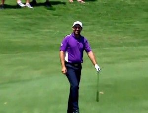 Allir sem hafa spilað golf vita hversu ergilegt það er þegar boltinn rétt fer framhjá holu. En það eru eflaust fáir sem hafa verið jafn óheppnir í stórmóti og Írinn Pádraig Harrington í gær á HP Byron Nelson Championship, Hann átti hið fullkomna högg að pinna fyrir erni og boltinn fór í holu…. en skoppaði síðan upp úr aftur! Harrington var sjokkeraður en það er ekki hægt annað en að dást að því hvernig hann hélt stillingu sinni. Hann lauk síðan lokahringnum á 74 höggum og lauk keppni jafn öðrum í 22. sæti. Til þess að sjá myndskeið af óheppni Harrington SMELlIÐ HÉR: