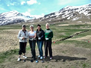 Það er enn ansi vetrarlegt um að lítast Norðanlands, 17. maí 2014. Snjór er enn í fjöllum eins og sést á meðfylgjandi myndum. Kylfingar þar láta það þó ekkert á sig fá og taka hring þó ekki sé allt komið í það horf eins og best gerist á golfvellinum yfir sumartímann. Á Arnarholtsvelli, golfvelli Golfklúbsins Hamars á Dalvík, er búið að opna fyrir spil á 7 brautum, en enn er spilað inn á vetrarflatir. Þessar hressu konur léku t.a.m. 1 hring í dag á Arnarholtsvelli:
