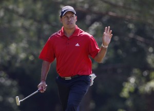 J.B. Holmes hefir tekið forystu á Wells Fargo mótinu. Holmes er búinn að spila á samtals 13 undir pari, 203 höggum (70 67 66). Í 2. sæti er Martin Flores 1 höggi á eftir og í 3. sæti er Phil Mickelson enn öðru höggi á eftir. Mickelson átti glæsihring, sem skaut honum upp í 3. sætið eða upp á 9 undir pari, 63 högg!!! Til þess að sjá stöðuna á Wells Fargo eftir 3. dag SMELLIÐ HÉR: Til þess að sjá hápunkta 3. dags Wells Fargo mótsins SMELLIÐ HÉR: (Verður sett inn um leið og PGA er til með myndskeiðið)
