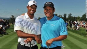 Vinur Tiger Woods frá háskólaárunum í Stanford, golffréttaskýrandinn Notah Begay III, fékk hjartaáfall í síðustu viku í Dallas, Texas. Begay, 41 árs, sem á sér fjölskyldusögu um hjartveikindi var lagður inn í Methodist Hospital þar sem hjartasérfræðingurinn Dr. Mark Jenkins setti upp stoðnet til þess að hreinsa kransæðarnar hægra megin. Þar sem aðgerðin var framkvæmd tiltölulega fljótt eftir áfallið var Begay fljótur að ná sér. Hann er ákveðinn í að snúa aftur til starfa sinna sem golffréttaskýrandi á NBC og Golf Channel á næstu vikum. Til þess að sjá frétt um hjartaáfall Begay á golfþættinum Morning Drive SMELLIÐ HÉR: