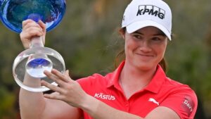Leona Maguire skrifaði sig í sögubækurnar þegar hún var fyrst írskra kvenna til þess að landa sigri á bestu kvenmótaröð heims LPGA. Það gerði hún í LPGA Drive On meistaramótinu, sem fram fór í Fort Myers, Flórída, dagana 2.-5. febrúar 2022. Sigurskor hennar var 18 undir pari, 198 högg (66 – 65 – 67) og átti hún 3 högg á Lexi Thompson, sem varð í 2. sæti. Í 3. sæti á samtals 14 undir pari varð síðan bandaríski kylfingurinn Sarah Schmelzel. Sjá má lokastöðuna á LPGA Drive On meistaramótinu með því að SMELLA HÉR: