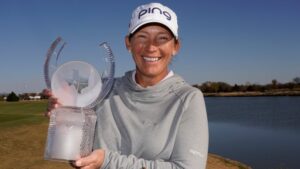 Það var Angela Stanford, sem sigraði á Volunteers of America Classic mótinu, sem var mót vikunnar á LPGA, dagana 2. – 6. desember 2020. Mótið fór fram á the Old American Golf Club ií The Colony, Texas. Þarna var hin 43 ára Stanford á heimavelli og sigraði að foreldrum sínum aðsjáandi. Sigurskor Stanford var samtals 7 undir pari (71 69 70 67) og sigurtékkinn upp á $262,500. Þrír kylfingar deildu 2. sætinu; landa Stanford, Yealimi Noh; og Inbee Park og So Yeon Riu frá S-Kóreu. Sjá má lokastöðuna á Volunteers og America Classic með því að SMELLA HÉR: