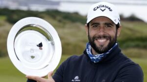 Það var spænski kylfingurinn Adrian Otaegui, sem sigraði á Scottish Championship presented by AXA (m.ö.o. skoska meistaramótinu), sem fram fór dagana 15.-18. október og lauk í gær á Fairmont, St. Andrews í Fife, Skottlandi. Sigurskor Otaegui var 23 undir pari, 265 högg (62 70 70 63). Otaegui átti heil 4 högg á enska kylfinginn Matt Wallace, sem varð í 2. sæti á samtals 19 undir pari. Í 3. sæti varð síðan Aaron Rai á samtals 17 undir pari. Sjá má lokastöðuna á skoska meistaramótinu með því að SMELLA HÉR: