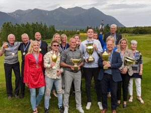 Meistaramót Golfklúbbs Öndverðarness fór fram dagana 1.-4. júlí sl.. Metþátttaka var í ár eða alls 107 þáttakendur. Veðrið var frábært allt mótið og völlurinn í frábæru ásigkomulagi. Klúbbmeistarar GÖ 2020 eru þau Ásgerður Sverrisdóttir og Sigurður Aðalsteinsson. Sjá má öll úrslit með því að SMELLA HÉR: Sjá má helstu úrslit í öllum flokkum hér að neðan: Meistaraflokkur karla (16) 1. sæti Sigurður Aðalsteinsson, 220 högg 2. sæti Þórir Baldvin BJörgvinsson, 226 högg 3. sæti Hallsteinn Traustason, 237 högg Fyrsti flokkur karla (20) 1 sæti: Finnbogi Steingrímsson – 247 högg 2. sæti: Ágúst Þór Gestsson – 257 högg 3 sæti: Jón Bergsveinsson – 258 högg Meistaraflokkur kvenna (7) 1. sæti: Ásgerður Sverrisdóttir Lesa meira