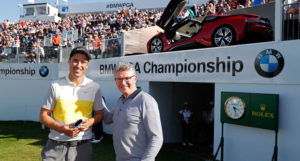 Ekki hefir borið mikið á enska kyfingnum Ross Fisher upp á síðkastið. Hann tók þátt í móti vikunnar á Evróputúrnum; BMW PGA Championship. Og viti menn Fisher fékk albatross á par-5 18. braut Wentworth í gær, laugardaginn 21. september 2019. Hann notaði 4-járn í höggið góða . „Þetta er besta golfhögg sem ég hef nokkru sinni hitt,“ sagði Fisher eftir hringinn. „Það voru 200 yardar að framlínu og 225 að pinna. Þetta var bara fullkomið 4-járns högg.“ Líklega hefir Fisher fundist höggið „fullkomið“ vegna þess að boltinn fór í holu og fyrir vikið vann hann sér inn BMW i8 Rosso Corsa, sem var $165,000 virði. Sjá má albatross Ross Fisher með Lesa meira