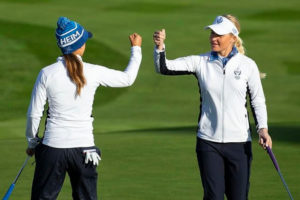 Eftir föstudags betri boltann er lið Evrópu yfir gegn liði Bandaríkjanna 4 1/2 – 3 1/2. Leikirnir eftir hádegi fóru með eftirfarandi hætti: Suzann Petterson og Anne Van Dam (lið Evrópu) unnu Lizette Salas og Danielle Kang (lið Bandaríkjanna) 4&2 Anna Nordqvist og Caroline Hedwall (lið Evrópu) töpuðu f. Angel Yin og Ally McDonald (lið Bandaríkjanna) 7&5 Charlie Hull og Azahara Muñoz (lið Evrópu) skildu jöfn við Nelly Korda og Brittany Altomare (lið Bandaríkjanna) Brontë Law og Carlotta Ciganda (lið Evrópu) skildu jöfn við Jessica Korda og Lexi Thompson (lið Bandaríkjanna). Sjá má stöðuna á Solhei Cup 2019 eftir 1. dag með því að SMELLA HÉR: Í aðalmyndaglugga: Sigurtvennd Evrópu Lesa meira