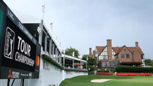 Leik á 3. hring Tour Championship var frestað vegna veðurs þ.e. þrumuveðurs. Það var kl. 16:17 að staðartíma á East Lake eftir að 6 áhorfendur höfðu meiðst vegna þrumuveðursins. Leikurinn var stöðvaður rétt eftir að lokahollið með þeim Justin Thomas og Brooks Koepka innanborðs var að ljúka við 5. holuna. Leik verður fram haldið sunnudaginn 25. ágúst. Sem fyrr er Justin Thomas efstur á samtals 12 undir pari en fast á hæla hans eru þeir Brooks Koepka og Rory McIlroy á samtals 11 undir pari. – Sjá má stöðuna á Tour Championship að öðru leyti með því að SMELLA HÉR: Í aðalmyndaglugga: East Lake. Mynd: PGA Tour