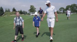 Nr. 2 á heimslistanum, Dustin Johnson (DJ) bauð stúlku með hvítblæði og tvíburabróður hennar að ganga eina braut á æfingahring hans fyrir Northern Trust, á Liberty National. Stúlkan, sem er kölluð „Mighty Meg“, er aðeins 9 ára og þetta var ósk hennar. Hún naut þess greinilega að fylgjast með DJ, eins og sjá má á meðfylgjandi myndskeiði. Hún fékk m.a. að pútta með pútter DJ, þar sem hún sagðist hafa gaman af minigolfi. „Þetta var frábært“ sagði Meg þegar hún faðmaði pabba sinn að brautargöngunni lokinni. Frábært að sjá atvinnumenn jafn góða og hugulsama og DJ!!! Sjá má samskipti DJ, Meg og tvíburabróður hennar, brautina, sem þau fengu að ganga Lesa meira