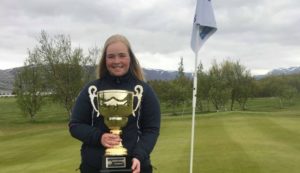 Amanda Guðrún Bjarnadóttir, kylfingur úr GHD, stóð uppi sem sigurvegari í Norðurlandsmótinu í holukeppni sem fór fram á Jaðri um helgina. Í mótinu spiluðu 16 af forgjafarlægstu kylfingum norðurlands, þannig þetta er flott afrek hjá henni. Á leið sinni að titlinum hafði Amanda betur gegn Birni Auðunni, Bergi Rúnari, Sturlu Höskulds, og að lokum Karli Hannesi í úrslitaleiknum. Úrslitaleikurinn réðist á 17. holunni og var það Húsvíkingurinn Karl Hannes Sigurðsson sem hreppti annað sætið. Bæði spiluðu þau flott golf yfir helgina og var úrslitaleikurinn sannarlega hnífjafn. Í verðlaun fékk Amanda 72.000 krónur og titillinn holukeppnismeistari Norðurlands. Í heildina var þetta skemmtilegt mót sem verður vonandi bara enn stærra og flottara Lesa meira