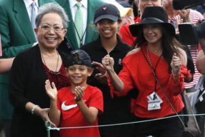 Tiger Woods var bara 21 árs krakki þegar hann vann fyrsta Masters titil sinn (og þann fyrsta af 15 risatitlum) árið 1997. Þegar hann sigraði Masters risamótið í 5. sinn, var hann sköllóttur 43 ára faðir hinnar 11 ára Sam Alexis og hins 10 ára Charlie Axel, sem mætt voru ásamt ömmu sinni Kultidu og kærustu föður þeirra, Ericu Herman, til þess að fagna með föður sínum. Þau sáu þegar Tiger setti niður skolla-pútt sitt á 18. fyrir 1 höggs sigur á þá Brooks Koepka, Dustin Johnson og Xander Schauffele. Sjá má lokastöðuna á Masters 2019 með því að SMELLA HÉR: „Faðir minn (Earl Woods) er ekki lengur hér,“ sagði Lesa meira
