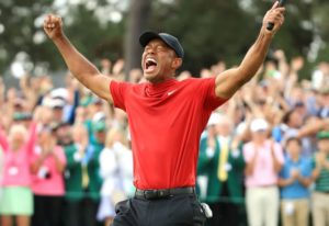 Tiger Woods sigraði í kvöld í 5. sinn á The Masters!!! Sigurskor Tiger var 13 undir pari, 275 högg (70 68 67 70). Þrír kylfingar deildu 2. sæti, 1 höggi á eftir, DJ, Brooks Koepka og Xander Schauffele. Til þess að sjá lokastöðuna á The Masters SMELLIÐ HÉR: Með þessu eru risamótssigrar Tiger orðnir 15 … og þarf Tiger nú aðeins að sigra í 3 risamótum í viðbót til þess að jafna við Jack Nicklaus!!!