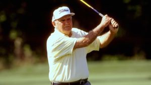 PGA Tour kylfingurinn Doug Ford er látinn, 95 ára að aldri. Doug Ford fæddist 6. ágúst 1922 og dó þriðjudaginn sl. 15. maí 2018. Hann var elst lifandi sigurvegari Masters risamótsins, sem hann sigraði á árið 1957, eftir frábæran lokahring upp á 66 högg, en hann kom þar með í veg fyrir að Sam Snead klæddist græna jakkanum það árið. John Joseph (Jack) Burke Jr., sem einnig er 95 ára er nú elst lifandi Masters sigurvegarinn, fæddur 23. janúar 1923. Hann sigraði á Master 1956. Sjá má Jackie klæða Doug í græna jakkann á myndinni hér fyrir neðan: Tveimur árum áður, 1955, sigraði Ford PGA Championship risamótið meðan það var Lesa meira