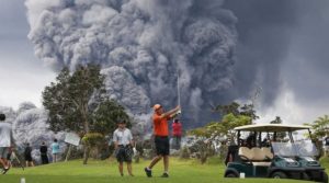 Allt frá 3. maí 2018 hafa íbúar Hawaii verið að ströggla við öskufall frá Kilauea eldfjallinu. En það kom ekki í veg fyrir að hópur kylfinga tók nokkrar holur í miðju gosinu. Ljósmyndari Reuters, Mario Tama náði glæsilegum myndum af 2 kylfingum að spila golf í Hawaii Volcanoes National Park með risamökkinn frá Kilauea eldfjallinu á bakvið þá. Volcano Golf & Country Club er með frábæran 18 holu golfvöll, sem byggður var 1921 – hann rétt slapp við eyðileggingu frá gosinu. Hins vegar er óvíst hversu miklar skemmdir Kilauea mun hafa valdið á fallegum golfvöllum Hawaii, þar til gosinu lýkur.