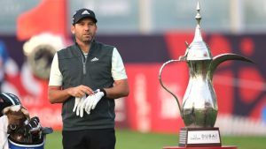 Mót vikunnar á Evrópumótaröðinni er Omega Dubaí Desert Classic. Flestir bestu kylfingar heims eru meðal keppenda. Sá sem á titil að verja er Sergio Garcia og fer hann vel af stað; er á 5 undir pari eftir 11 holur og deilir 5. sætinu á eftir 4 sem eru í 1. sæti, sem stendur, en meðal þeirra er Rory McIlroy. Indverski áhugamaðurinn 18 ára ungi, Ryhan Thomas er á 2 yfir pari, eftir 9 holur. Það er enn snemma dags og margir eftir að fara út þannig að margt getur breyst enn. Fylgjast má með skorinu á Omega Dubaí Desert Classic með því að SMELLA HÉR: