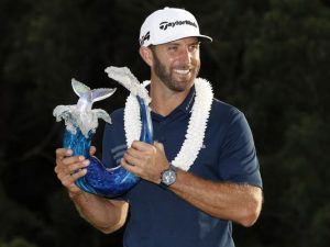 Það var nr. 1 á heimslistanum, Dustin Johnsson (DJ) sem stóð uppi sem sigurvegari á Sentry Tournament og Champions, sem fram fór á Hawaii. DJ var á glæsiskori samtals 24 undir pari, 268 höggum (69 68 66 65). Hann átti m.a. ótrúlegt högg á hinn 430 yarda par-4 12. holu á Kapalua en sjá má myndskeið af höggi DJ með því að SMELLA HÉR: Í 2. sæti varð Spánverjinn Jon Rahm heilum 8 höggum á eftir DJ á samtals 16 undir pari og Brian Harman, sem veitti DJ harða keppni framan af varð í 3. sæti á samtals 15 undir pari. Til þess að sjá lokastöðuna á Sentry TOC SMELLIÐ HÉR: