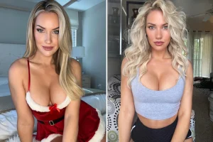 Golfstirnið Paige Spiranac, 29 ára, hlóð niður meðfylgjandi myndum af sér á Instagram. Á annarri myndinni óskaði hún áhangendum sínum „gleðilegra jóla“ í kynþokkafullum jólasveinkubúningi. Á myndinni situr hún brosandi á rúmstokki sínum. Á Instagram á Spiranac, sem einkum hefir verið í golffréttum, vegna harðrar gagnrýni hennar á LIV mótaröðina, um 3,7 milljón fylgjenda. Það varð beinlínis allt vitlaust eftir myndbirtinguna og Spiranac hlaut hafsjó af kommentum, þar sem áhangendurnir svöruðu jólakveðju hennar. Það eru líklegast fáir, sem fá jafnmargar jólakveðjur á Instagram og Spiranac í ár!