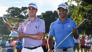 Bandaríski kylfingurinn Justin Thomas er búinn að eiga hreint magnað ár 2017, það sem af er. Hann sigraði 5 sinnum á PGA Tour og átti 12 topp-10 árangra og það hefir fleytt honum til titilsins kylfingur ársins 2017 á PGA Tour. Thomas, er 24 ára frá Louisville, Kentucky og féll honum 10 milljóna bónus potturinn á lokamóti PGA Tour FedExCup í skaut eftir 5 sigra á tímabilinu, en þeirra á meðal var fyrsti risamótssigur hans á PGA Championship. Aðrir sigrar hans unnust á CIMB Classic, Sentry Tournament of Champions, Sony Open in Hawaii og Dell Technologies Championship. Á Sony Open, varð Thomas yngsti kylfingurinn til þess að ná skori upp á Lesa meira