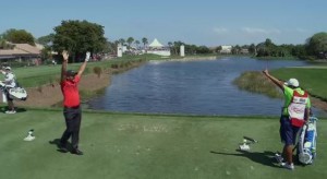 Jhonattan Vegas frá Venezuela datt aldeilis í lukkupottinn á Honda Classic. Hann fór holu í höggi á par-3 15. holu, sem er 179 yarda eða u.þ.b. 164 metra… … og það eftir að hann var nýbúinn að fá skolla. Aldeilis frábært að taka högg aftur með stæl!!! Sjá má ás Vegas með því að SMELLA HÉR: Vegas lauk keppni T-4 (67 73 69 64 ) þ.e. deildi 4. sætinu ásamt 5 öðrum þ.á.m Martin Kaymer frá Þýsklandi, en allir léku þeir á samtals 7 undir pari. Sigurskor Rickie Fowler var 12 undir pari. Vegas átti besta skorið á lokahringnum frábær 64 högg; fékk ásinn, 5 fugla og 1 skolla.