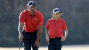 Þegar augu golfheimsins beindust að forsetabikarnum um síðustu helgi, þá sat golfframtíðin ekki auðum höndum. Charlie Woods sonur golfgoðsagnarinnar Tiger Woods, náði lægsta skori ferilsins upp á 68 höggum í gær, sunnudaginn 25. september 2022, í undankeppni á Notah Begay III Junior National Golf Championship á Mission Inn Resort í Howey-in-the-Hills, Flórída. Faðir hans, Tiger Woods, var kylfuberi. Eftir 1 yfir 37 á fyrri níu var Charlie með tvo fugla og örn á par-5 14. holu og spilaði á 68 höggum. Annað högg hans á þeirri 14. holu fór næstum í holu fyrir albatross, en hann náði því ekki, en setti hins vegar niður auðveldum erni! Flestir 13 ára strákar væru Lesa meira
