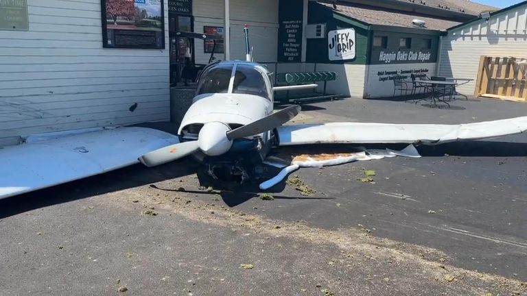 Lítil flugvél nauðlenti á Haggin Oaks golfvellinum í Sacramento, Kaliforníu fyrr í morgun.