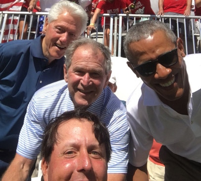Það er ekki að Phil hafi slegið högg lífs síns úti á golfvelinum, heldur náði hann epísku selfie þ.e. ljósmynd af sjálfum sér ásamt 3 fyrrverandi Bandaríkjaforsetum þeim Bill Clinton, George W. Bush og Barack Obama.