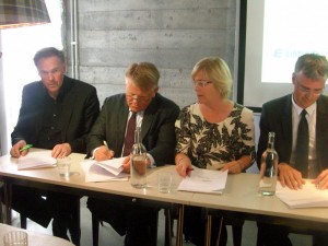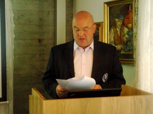 Hörður Þorsteinsson, framkvæmdastjóri GSÍ, í ræðustól við undirritun FORSKOTS - nýstofnaðs afreksjóðs kylfinga. Mynd: Golf 1