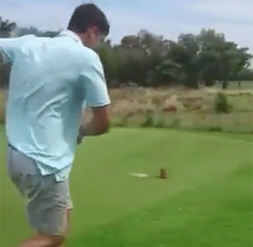 Kylfingurinn virðist hafa tekið einhvers konar snúningsáskorun frá vinum sínum á golfvellinum…. með þessum líka kannski fyrirsjáanlegum afleiðingum.