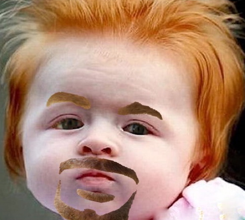 Zoe Olivia litla Mahan er varla orðin dagsgömul þá eru einhverjir grínistar farnir að birta myndir af því hvernig hún komi til með að líta út í framtíðinni.