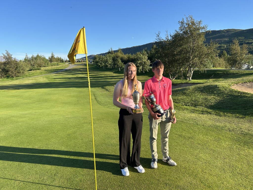 Í aðalmyndaglugga: Andrea Ýr og Valur Snær klúbbmeistarar GA 2024. Mynd: GA