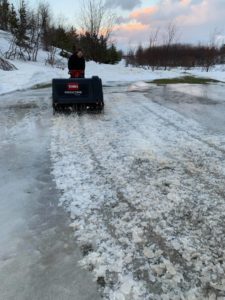 Við bíðum því spennt eftir næstu hláku sem mun hjálpa okkur. Meðfylgjandi myndir neðst í frétt sýna vallarstarfsmenn vinna á klakanum.