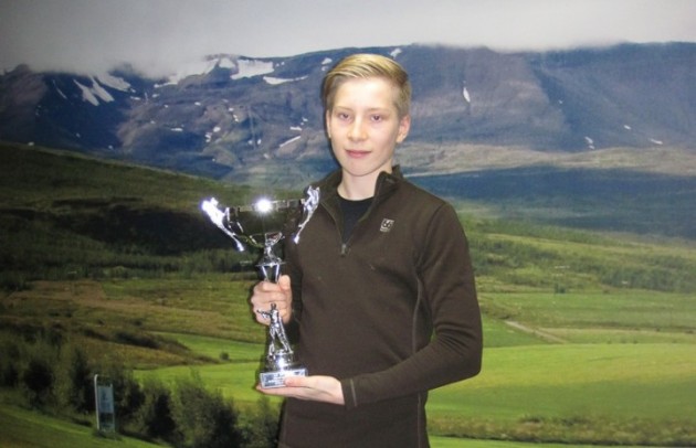 Bikarinn er veittur þeim unglingi sem uppfyllir kröfur um háttvísi, prúðmennsku og framfarir í golfþíþróttinni. Við hér í golfklúbbi Akureyrar getum verið stolt af okkar yngri iðkendum, þar eigum við breiðan hóp ungra fyrirmyndarkylfinga og valið því ákveðið lúxusvandamál. Bikarinn að þessu sinni hlaut Kristján Benedikt Sveinsson. Kristján er öðrum góð fyrirmynd hvort heldur er í keppni eða leik og stundar sínar æfingar af mikilli samviskusemi, kemur ávallt vel fyrir og er duglegur að æfa sig. Auk þess sem hann hefur metnað til að ná langt í íþróttinni, sumarið sem leið voru helstu afrek þessa unga golfara eftirfarandi. Akureyrarmeistari 14 ára og yngri. Norðurlandsmeitari 14 ára og yngri. Unglingalandsmótsmeistari 13 ára og yngri. Hann var í 3. sæti á GSÍ mótaröð 14 ára og yngri, ennfremur var hann valin yngstur allra í afreksbúðir GSÍ.