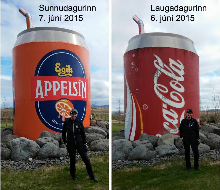 Laugardaginn 6. júní 2015 mátti enn sjá kók-dósina en sunnudaginn 7. júní var appelsín dós komin í staðinn.