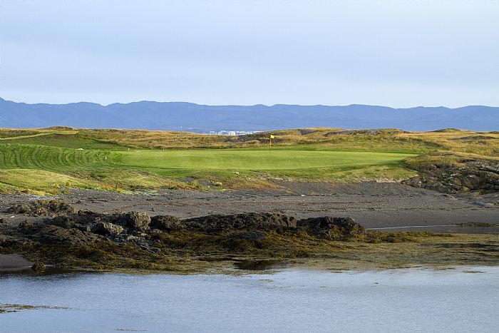 „Gullkistuvíkin“ par-3 5. brautin á Brautarholtsvelli – ein besta par-3 hola á Norðurlöndum skv. „The Finest“ og völlurinn í 40. sæti skv. hinu virta Golf Digest!!!. Brautarholtið er í uppáhaldi hjá Huldu Clöru. Mynd: Golf 1