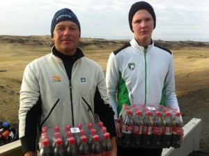 Sigurvegarar á Páskamóti GG 2013: Helgi Axel Sigurjónsson, GVS og Aron Snær Júlíusson, GKG. Mynd: GG