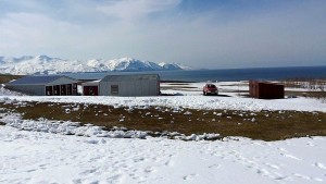 Æfingarsvæðið á Katlavelli, Húsavík á kafi í snjó. Kinnafjöll í baksýn.
