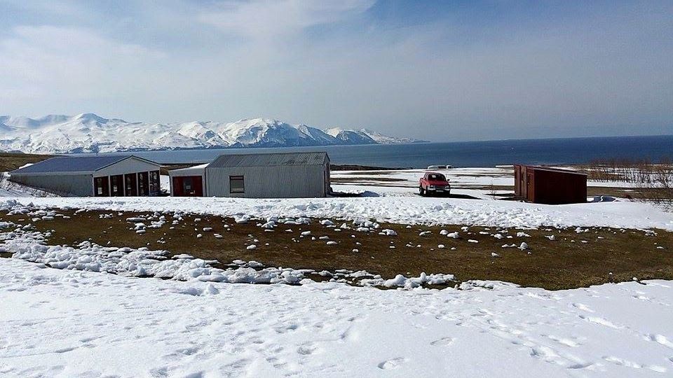 Og svo er enn ein mynd af æfingasvæðinu við Katlavöll, með hin gullfallegu Kinnarfjöll í baksýn: