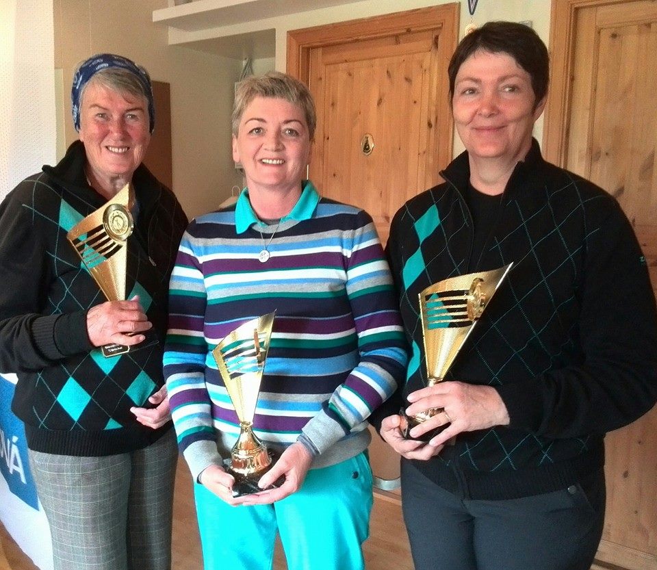 Indíana Auður Ólafsdóttir sigurvegari í 1. flokki kvenna f.m. T.v.: Gígja Kristín og t.h.: Bryndís. Mynd: GHD